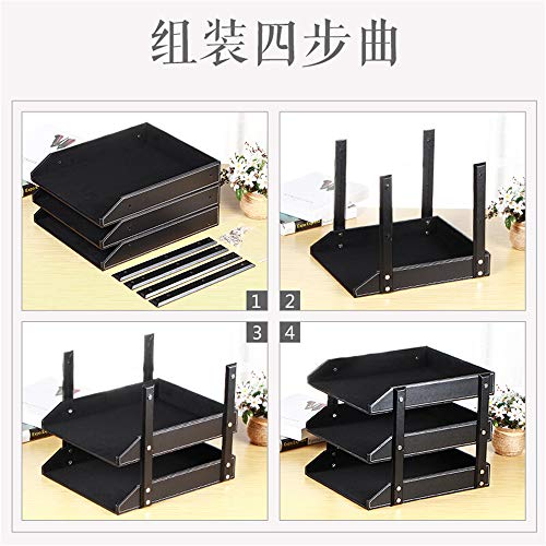 Vassoio portadocumenti impilabile in pelle da ufficio, organizer per documenti, cartoleria, rivista, giornale (nero)