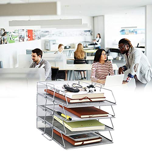 Vassoio Portadocumenti da Scrivania in Rete a 4 Livelli, Vaschetta Documenti e Porta-corrispondenza Scrivania Ufficio, Metallo, Robusta Struttura in Metallo e Acciaio, Facile da Montare,Argento