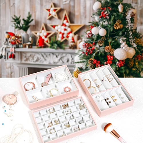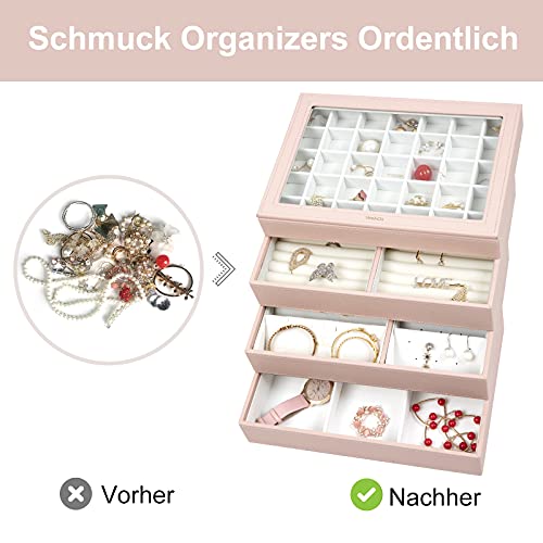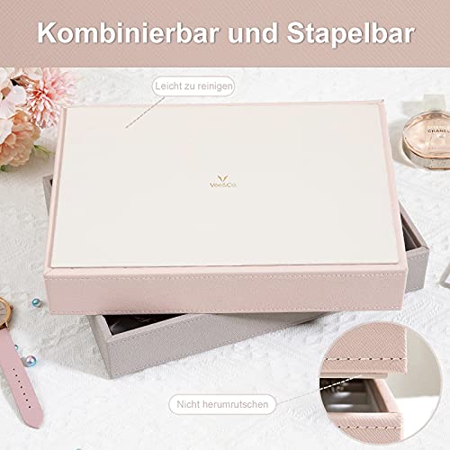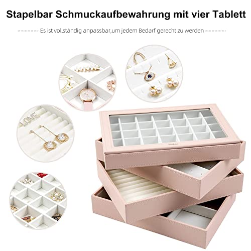 Vee - Vassoio portagioie da donna, impilabile, con coperchio, per anelli, bracciali, orecchini, collane, colore rosa