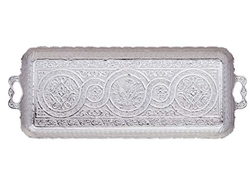 Vassoio rettangolare turco ottomano per tè e bevande (vassoio piccolo) (13 INC* 5,5 INC) (argento)