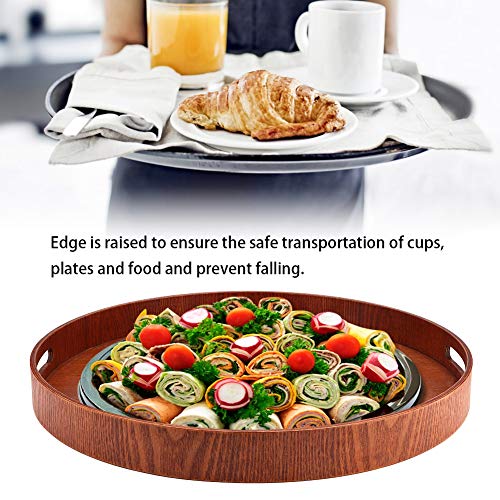 Vassoio rotondo per alimenti, Vassoio da portata tondo grande 50 cm / 19,7 '' Vassoio per alimenti in legno + 2 maniglie Vassoi multiuso ad incastro di medie e piccole dimensioni
