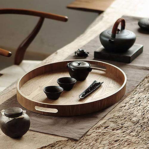 Vassoio rotondo in legno, ecologico e durevole, con manici e bordi alti, Not null, Come mostrato in foto., s