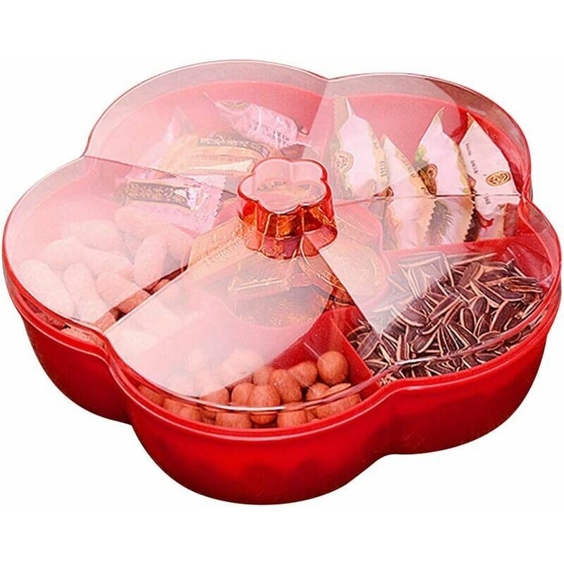 Vassoio per snack: ideale per conservare noci, caramelle, frutta secca o altri snack.Materiale plastico: la scatola per snack in PP e PS, non tossica, sicura e resistente.Design multi-griglia: lo snack -Vassoio per servire è composto da 6 scomparti, che possono essere posizionati separatamente per evitare di mescolare. Con coperchio: la scatola per alimenti ha un coperchio trasparente in modo da poter vedere bene l'interno e proteggere il cibo da polvere e umidità.Aspetto squisito: il design a forma di fiore è una decorazione eccellente per la tua casa. Specifiche: Nome: Snack Box Materiale: PP< br/> Colore: rosa, verde, rosso, blu Dimensioni: circa 25 x 25 cm Confezione inclusa 1 vassoio per snack