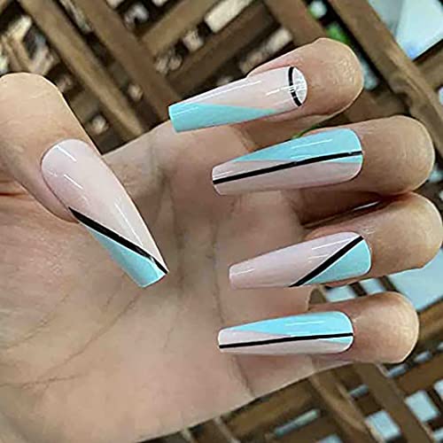 Le punte per unghie blu includono un set da 24 pezzi di punte per unghie finte, adesivi per colla per unghie gratuiti e mini lima per unghie. È facile per specialisti delle unghie professionisti o studenti di nail art, adatto per saloni di bellezza o per progettare il tuo stile e modello.