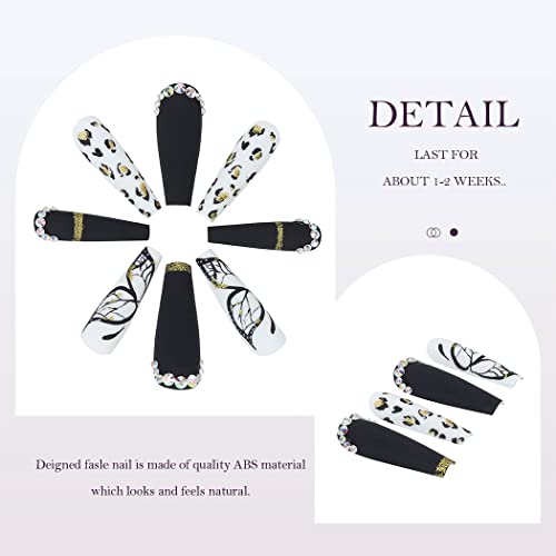 Vatocu Coffin Unghie Finte Opache Farfalla Unghie Finte Stampa Leopard Lunga Stampa sulle Unghie Stick Acrilico sulle Unghie per Donne e Ragazze (24 pezzi)