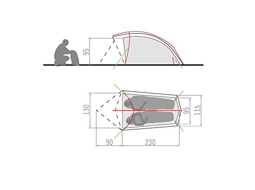 Anni ausnuetzung ottimizzata tramite asta nell' area del piede e pin supplementari nella tenda esterna, angolare