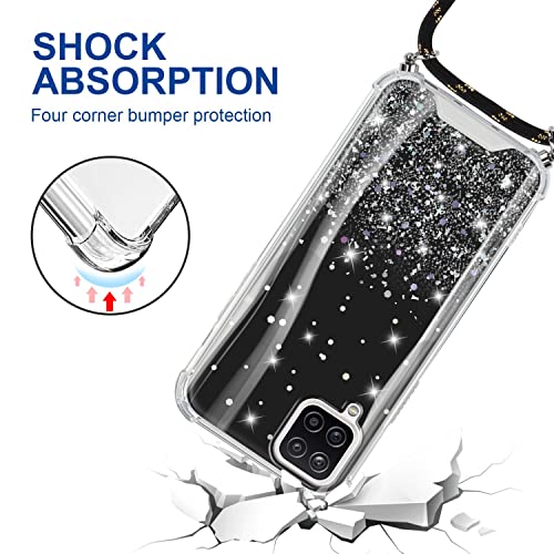 Vauki Cover con Cordino per Samsung Galaxy A12 4G/A12 Nacho 6,5", Glitter Bling Custodia Trasparente Silicone Clear Antiurto con Necklace Collana Regolabile Case Rigida con Brillantini Stelle, Nero