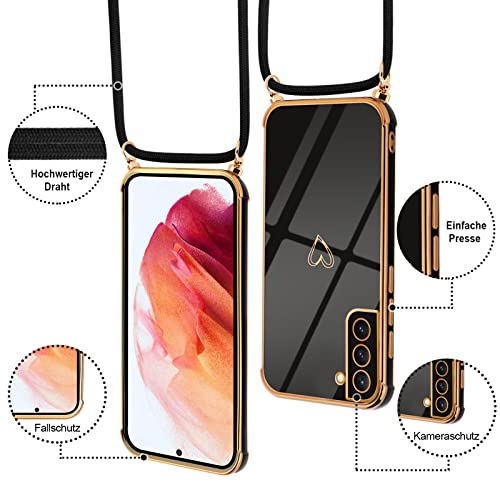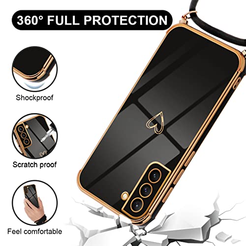 Vauki Cover con Cordino per Samsung Galaxy S21 5G, Carina Motivo Cuore Custodia con Collana, Antiurto Ultra silicone TPU Morbida e Sottile Catena per Cellulare Case per Samsung S21 5G 6.2", Nero