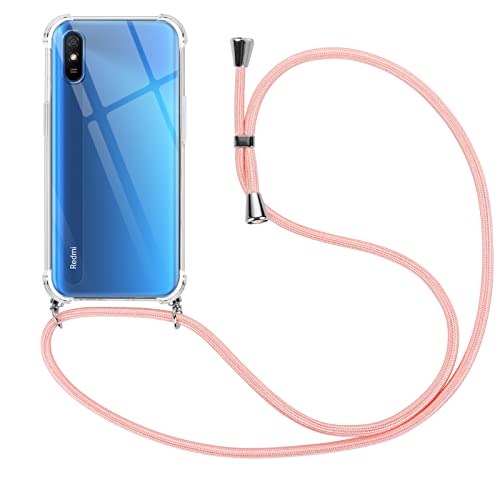 Vauki Cover con Cordino per Xiaomi Redmi 9AT / Redmi 9A, Custodia Trasparente Silicone con Collana Tracolla per Redmi 9A / Redmi 9AT 6.53", Case Tracolla Antiurto AntiGraffio, Oro Rosa