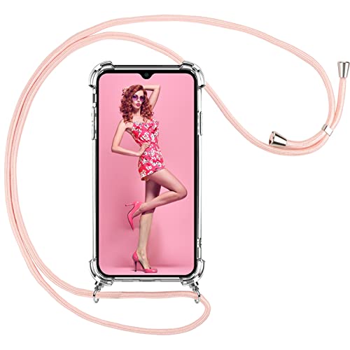 Vauki Cover con Cordino per Xiaomi Redmi 9C /Redmi 9C NFC,Custodia on Laccio Collana Tracolla Trasparente Silicone TPU+PC Bumper Back Antigraffio Proteggere Case Corda per Redmi 9C,Rosegold