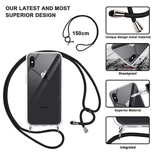 Vauki Cover per iPhone XS/X con Cordino Silicone Trasparente Custodia con Regolabile Laccio Tracolla Collana per Cellulare Antiscivolo Antiurto Protettiva Case Compatible con iPhone XS/X 5.8",Nero