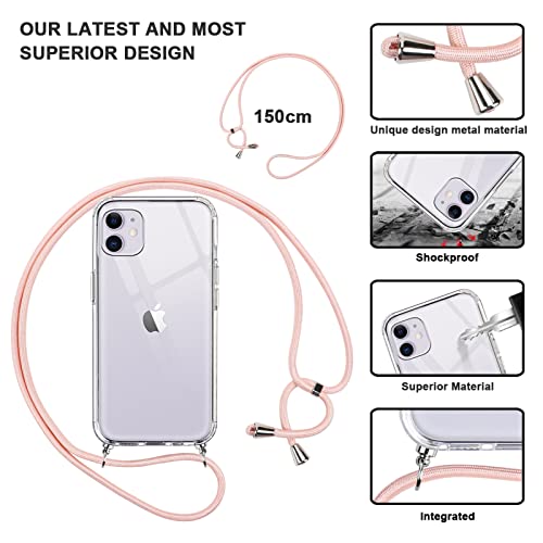 Vauki Cover per iPhone 11 con Cordino Silicone Trasparente Custodia con Regolabile Laccio Tracolla Collana per Cellulare Antiscivolo Antiurto Protettiva Case Compatible con iPhone 11 6,1",Oro Rosa