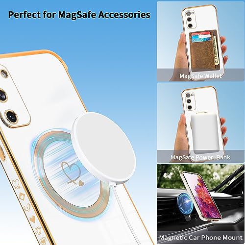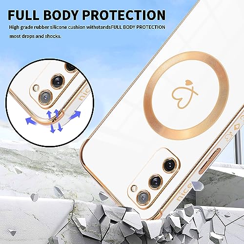 Vauki Cover per Samsung Galaxy S20 FE 5G Comaptibile con Magsafe con 2 Vetro Temperato Custodia Cuore Amore Donna Sottile Morbido Silicone TPU Magnetica Antiurto Case per Samsung Galaxy S20 FE,Bianco