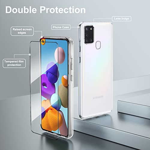 Vauki Cover per Samsung Galaxy A21s con 2 Pezzi Vetro Temperato,Custodia Ultra Trasparente Silicone Morbido TPU e Pellicola Protettiva,Antiurto Sottile Cellulare Case per Samsung A21s 6.5"