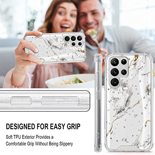 Vauki Cover Samsung Galaxy S22 Ultra 5G con Cordino,Trasparente Marmo Glitter Antiurto Brillantini Tracolla Laccio Collana Custodia,Silicone Bumper Case per Samsung S22 Ultra 5G,Weiß