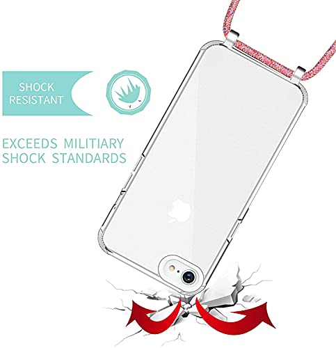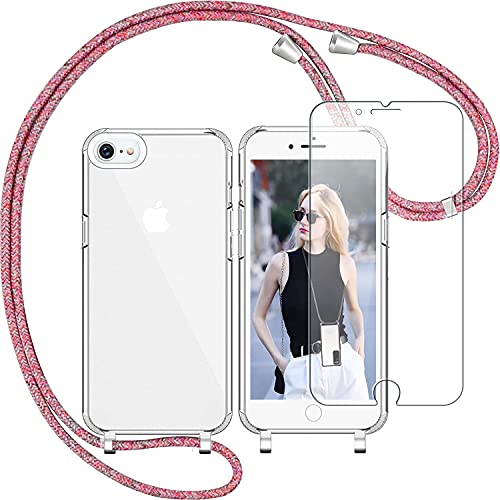 Vauki Cover Trasparente con Cordino per iphone SE 2020/7/8 4,7" con 1 Pezzi Vetro Temperato, Custodia con Regolabile Collana, Morbido Silicone Leggero Soft TPU Bumper Antiscivolo Case, Arcobaleno