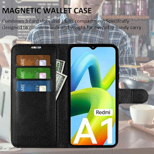 Vauki Cover per Xiaomi Redmi A1/Redmi A2,Custodia in Pelle PU di con Slot Cart - Supporto Stand Fibbia Magnetica | Tecnologia RFID | Portafoglio Libretto Flip Protettiva con Silicone, Nero