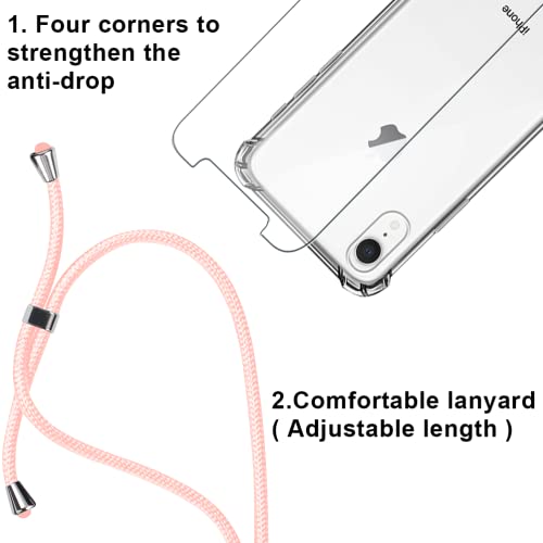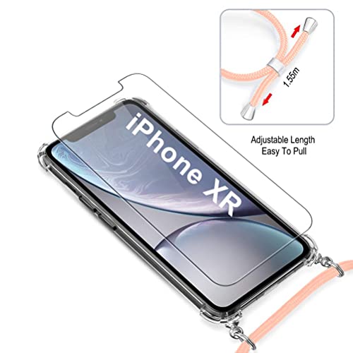 Vauki Custodia con Cordino per iPhone XR Cover e Vetro Temperato Trasparente con Collana, Silicone Antiurto Case con Laccio Tracolla Cordoncino Custodia per Apple iPhone XR 6,1", Oro Rosa