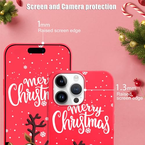 Vauki Natale Cover per iPhone 14 Pro Max [3 Pezzi] Rosso Custodia Silicone TPU con Motivo Christmas Cervo Case, Antiurto AntiGraffio Cover Regalo Natale Donna per iPhone 14Pro Max, Renna Natalizia