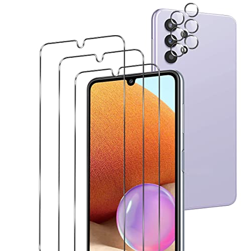 Vauki [5 Pezzi 3 Pcs Pellicola Protettiva Compatibile con Samsung Galaxy A32 4G 6.4",9H Durezza HD Trasparente Vetro Temperato + 2 Pcs Protettivo Fotocamera Protezione Lente, per Samsung A32 4G