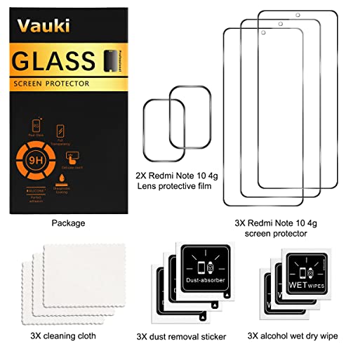 Vauki [5 Pezzi 3 Pcs Pellicola Protettiva Compatibile con Xiaomi Redmi Note 10 4G/Redmi Note 10S 6.43",9H Durezza HD Trasparente Vetro Temperato + 2 Pcs Protettivo Fotocamera Protezione Lente