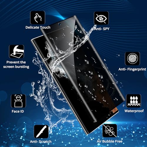✔️ [Dispositivi compatibili] Privacy Pellicola Protettiva è appositamente progettato per Samsung Galaxy S22 Ultra 5G 6.8",design di apertura preciso consente alla protezione di adattarsi perfettamente allo schermo. Design della protezione dello schermo è leggermente più piccolo delle dimensioni dello schermo, questo per lasciare un po' di spazio per installare custodia del telefono, in modo che custodia e protezione dello schermo non interferiscano tra loro.