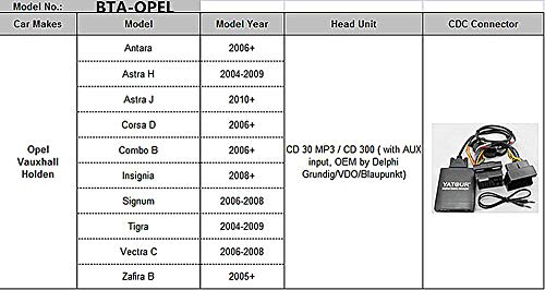 Opel Vauxhall Holden auto adattatore Bluetooth, digitale auto stereo AUX adattatore vivavoce chiamata con USB di ingresso audio da 3.5 mm per Opel Tigra (bta-opl Captiva 2006-2010)