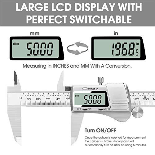 Materiale di alta qualità: tutte le parti sono realizzate in acciaio inox 4CR13 di alta qualità secondo le norme ISO9001. Inoltre, il calibro a vernier digitale da 3,2 mm di spessore si adatta bene alla mano e può essere finemente spostato con il pollice zigrinato;