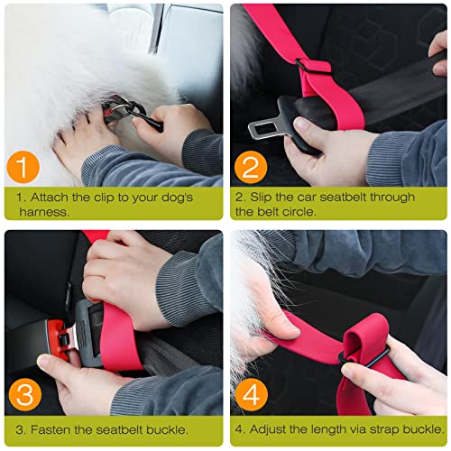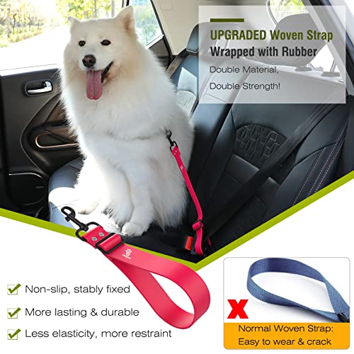 VavoPaw Cintura di Sicurezza Auto Universale per Cani, 33-50 cm Regolabile Guinzaglio Cintura di Sicurezza per Cani Fascia Antiscivolo con Moschettone Resistente Cablaggio per Veicoli, Rosa Rossa