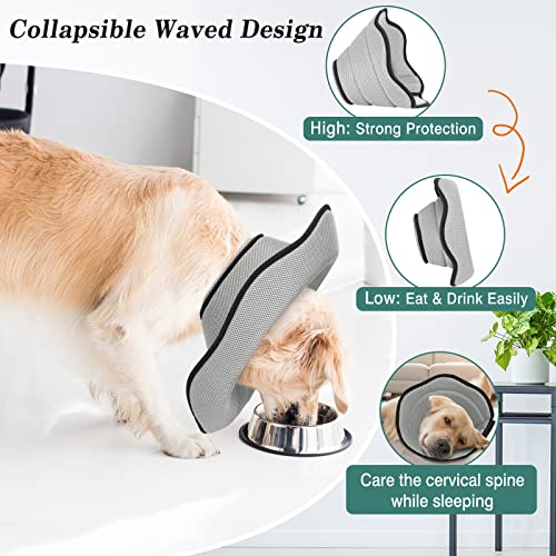 VavoPaw Collari Protettivi e Coni per Cani, Collare di Recupero per Cani Regolabile Morbido per Animali, Collare Elisabettiano Traspirante per Cani Dopo Interventi Chirurgici, L, Grigio