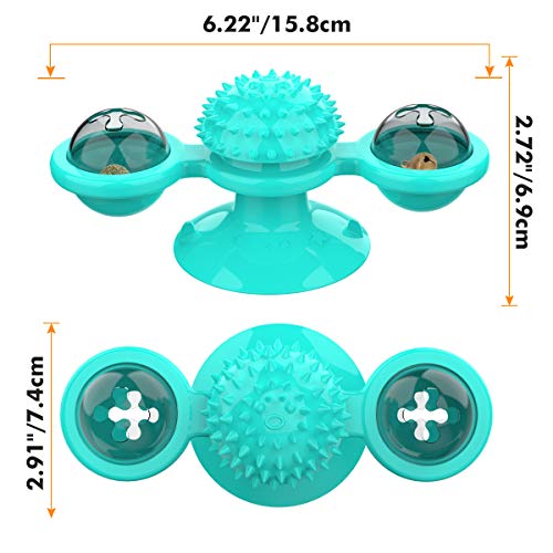 DIVERTIMENTO SENZA FINE - Campane e catnip possono essere posizionate nel contenitore trasparente, quando il mulino a vento ruota, il suono della campana e il profumo della catnip attirano il gatto a giocare, il che può stimolare il gatto a esercitarsi per bruciare l'energia in eccesso del gatto, aiuta a mantenere il gatto agile e mantenere il gatto concentrato.