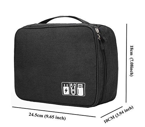 Vaxiuja Universale Cavo da Viaggio Borsa Organizer Elettronica Accessori Custodia da Trasporto Box con Fascette, Nero, Organizzatore Accessori per Power Bank, Cavo USB, Auricolari, Pen Drive. etc.