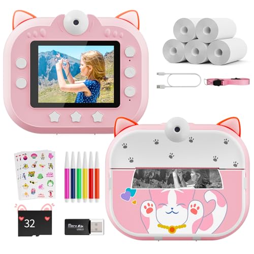 【Questa Fotocamera con Funzione di Stampa Istantanea】Avere Una foto su carta in bianco e nero in soli 3 secondi e ha 7 densità di stampa. Allo stesso tempo, è possibile ottenere foto a colori da memorizzare sulla scheda SD .Ci sono 5 rotoli di carta da stampa.I bambini possono scattare foto interessanti e scarabocchi per stimolare l'immaginazione.