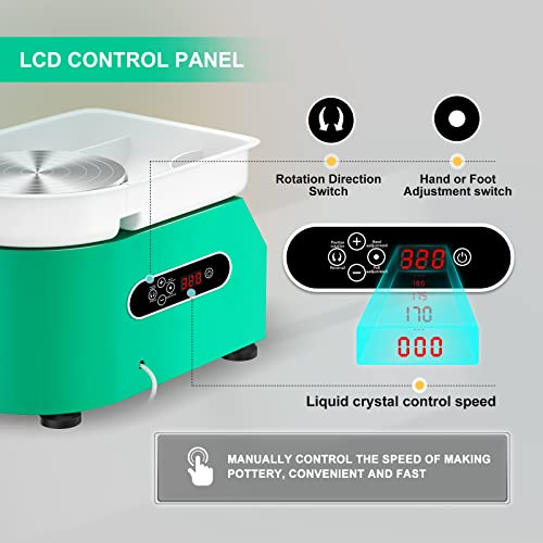 【Schermo tattile LCD】Questo vasaio aggiornato ha un display LCD toccabile, che può visualizzare la velocità in tempo reale e impostare facilmente la velocità, senza la necessità di utilizzare il pedale o l'asta manuale per controllare la velocità come il vasaio tradizionale, e sarà più comodo. Questo lo rende più facile e meno laborioso da usare. (compreso anche il pedale)