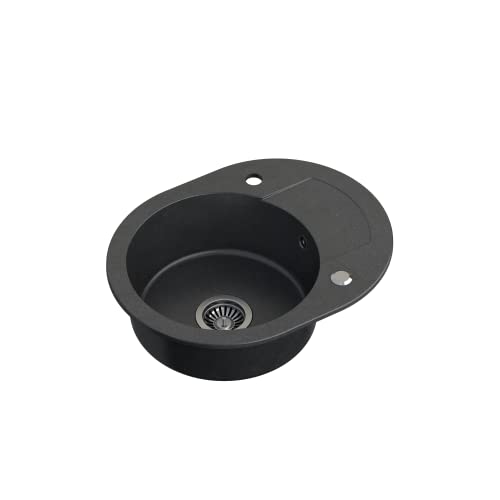 Moderno lavello in granito massiccio realizzato in 80% granito e 20% resina con valvola a cestello rotondo per aprire e chiudere automaticamente lo scarico. Materiale estremamente duro, antigraffio e colorato: la superficie è facile da pulire grazie a una superficie liscia e sigillata.