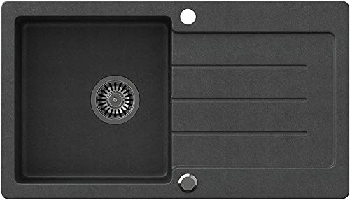 VBChome Lavello 77 x 44 cm + rubinetto nero granito monolavello da incasso reversibile con sifone