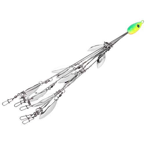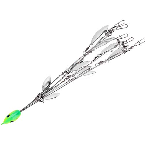 Vbest life 12 Bladed Fishing Umbrella Rig Kit Multi-Lure Baits Rigs with Swivels 5 Arms Artificial Bait Kit Ultralight Lure(Verde)