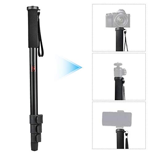 Tubo a 4 sezioni, puoi regolare facilmente l'altezza del monopiede in base alle tue esigenze.Design pieghevole, dimensioni compatte, leggero.