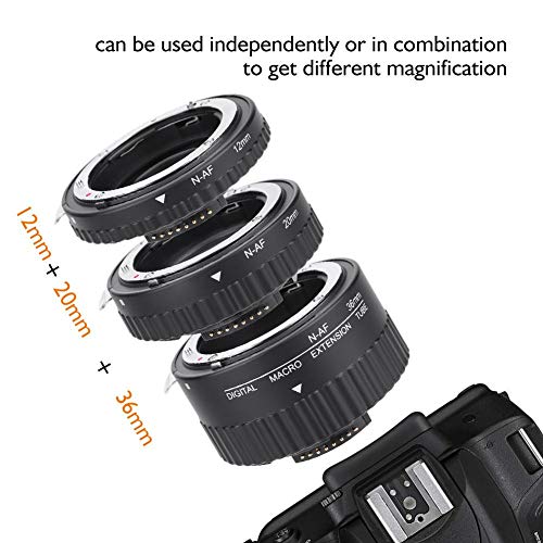 VBESTLIFE Extensione Lens Tube, Messa a Fuoco Automatica Macro Lente 3 Tipi di Lente 12mm + 20mm + 36mm Lens Lente Tube per Nikon F Mount DSLR A in Metallo B in Plastica(B)