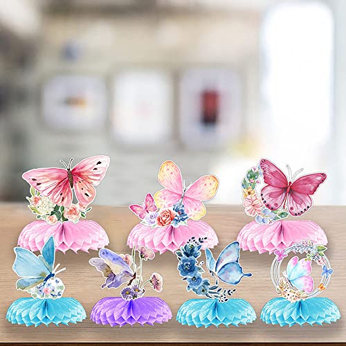 VBNZBK 7 Pezzi Centrotavola a Forma di Farfalla a Nido d'Ape, Centrotavola a Farfalla ad Acquerello per Decorazioni da Tavola per Feste di Compleanno a Tema Farfalla, Decorazioni per Baby Shower