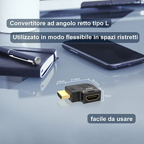 Adatto per spazi ristretti: L'adattatore HDMI angolo è la soluzione perfetta per TV o proiettori a parete che non hanno molto spazio dietro. Può cambiare l'orientamento della porta HDMI, impedendo così che il cavo HDMI venga piegato o rotto