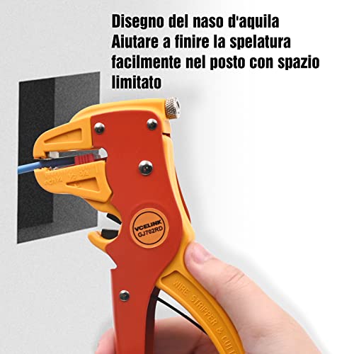 2 in 1 SPELAFILI: Spelafili automatici può tagliare i fili oltre alla spelatura. Può tagliare rapidamente e facilmente vari fili di rame e alluminio e spllare fili di striscia, che è molto conveniente per il vostro lavoro. Poi Il design del becco d'aquila consente al prodotto di entrare in uno spazio stretto per lo spogliamento