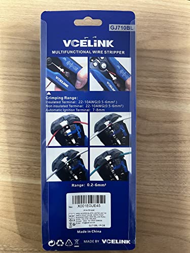 VCELINK Pinza Spelafili Elettricista, Spelacavi Manuale Anche per Taglio e Crimpatura di Cavi con Diametro di 0,2-6 mm², Pinza a Crimpare per Capicorda, Blu