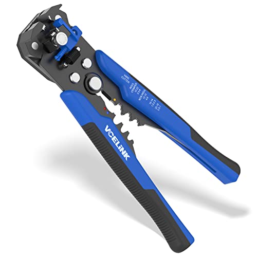 VCELINK Spellafili Automatico per Cavi 22-10 AWG (0,5-6 MM²), Spelafili 3 in 1 per Spelatura, Taglio e Crimpatura per Terminali Isolati e Non Isolati 22-10 AWG (0,5-6 MM²), Blu