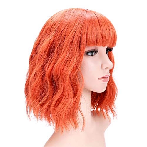 VCKOVCKO Parrucche Bob Corte Parrucca Ondulata Pastello Con Frangia D'aria Parrucche Lunghe Fino Alle Spalle Da Donna Parrucca Cosplay Riccia Sintetica Per Ragazza Parrucche Colorate (12",Arancione)