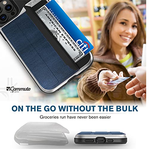 [CUSTODIA PORTA CARTE COMPATIBILE BREVETTATA CON IPHONE 12 PRO MAX] vCommute combina funzionalità e protezione. Lo slot per schede nascosto memorizza in modo sicuro documenti d'identità, carte di credito o di debito o carte di trasporto. Inoltre, non interferisce con Apple Pay. Compatibile con iPhone 12 Pro Max.
