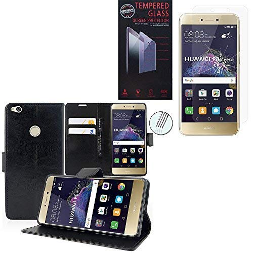 VCOMP Custodia Portafoglio Pelle PU a Libro Falda Supporto Video Colore Nero + 1 Pellicola Vetro temperato Trasparente per Huawei P8 Lite (2017) 5.2"/ P9 (2017)/ Honor 8 / Nova GR3
