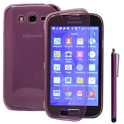 VCOMP Samsung Galaxy Grand Neo/Grande Lite/Grande Vantaggio I9060 I9062 I9060I: Guscio di Silicone Gel Portafoglio A Libro Falda + Pennino - Viola