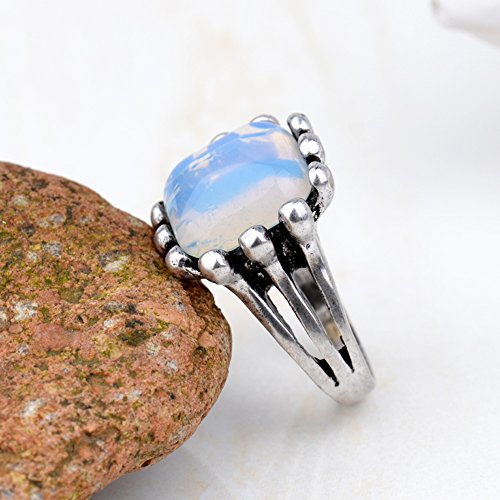 Vecchia Yazilind l'anno marce a forma di rombo bianco Opal Retro argentato 16,5 Cut 18 19 Anello-donne