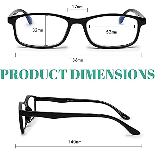 Vecien Occhiali da lettura anti luce blu Rettangolare 4-Pack Occhiali da computer adatti per gli uomini (1.5)